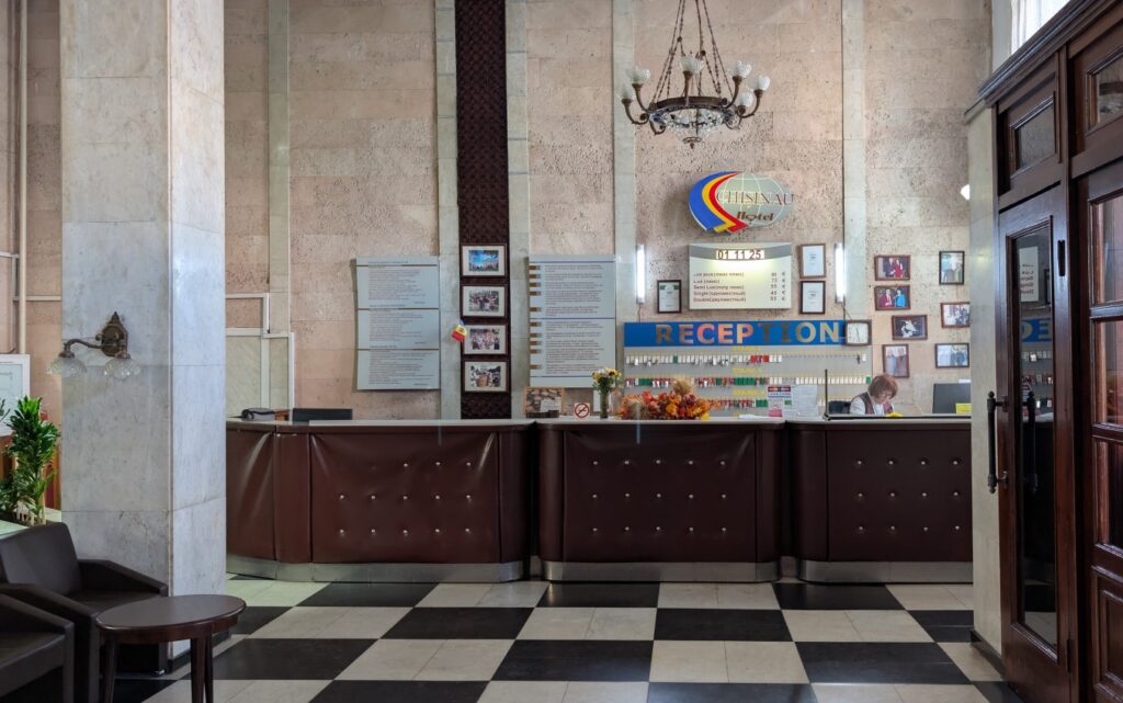 L’arrivo in stazione a Chişinău è davvero caratteristico nelle forme di un mercatino di vestiti e oggetti nella migliore tradizione sui marciapiedi, con lenzuola a far da banco: i grandi classici, attrezzature fotografiche, ottiche, per misurazione, adesso informatiche dal mouse senza rotella a schermi improbabili, oltre a vestiti che presuppongono un inverno rigido in arrivo. Dei tre grandi alberghi sovietici in città, due sono abbandonati, il Cosmos e il Național (ex Intourist), e uno resta, il Chişinău, ovvio sia il nostro. L’arcigna signora alla reception è un’altra pietra angolare sulla quale è stato edificato il socialismo, si racconta abbia vagamente sorriso una volta nel 1974 e poi mai più; ancora prima di presentarci sa chi siamo e dove dobbiamo andare, non ci rivolge mai lo sguardo. È evidente che consideri il suo sottoposto un coglione, come considera noi, del resto. Il ‘coglione’ è più che altro un uomo con delle incertezze tipo la cortesia e in italiano ci dice di aver fatto il badante a Orvieto, «un sacrificio» lo definisce e lo posso ben capire. La reception, coeva, mi fa sentire subito a casa.