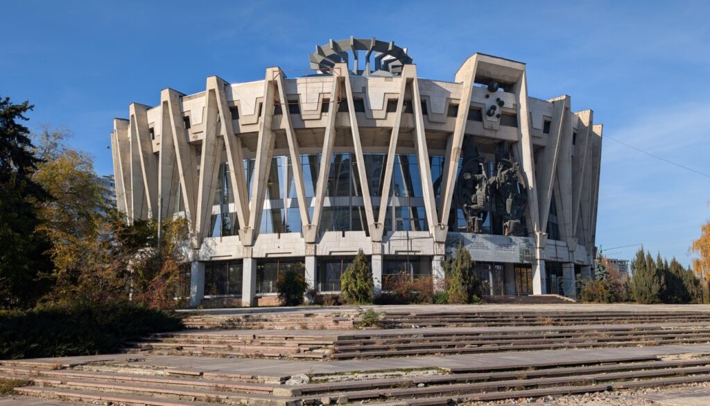 Dieci-venti minuti. La città, grande di circa settecentomila abitanti, un terzo del paese, è sviluppata lungo una strada principale e quella doveva essere, almeno fino ai russi, la struttura generale; ortogonalmente si dipartono le varie zone della città, a est la parte più residenziale ed elegante, con università stile-politecnico sovietico e magnifico lago, a ovest la parte più rurale, un tempo, e ora in fase di ampia espansione edilizia come a nord e sud. Impressionante il numero di condomini in costruzione o recenti, evidentemente l’inurbazione dev’essere poderosa. Tra le case conservate, poche, simili in tutto alla Romania rurale orientale, più che a quella austroungarica occidentale, quella di Puškin, che vi passò del tempo tra 1820 e 1823, percependone la perifericità e l’isolamento – scrisse: «Oh Kišinev, oh città oscura! […] Maledetta di Kišinev, la lingua non si stanca mai di insultarti!» innescando la reazione dei locali, di cui si fece portavoce il poeta e scrittore Vasile Alecsandri che rispose prontamente: «Sei più nero degli zingari, / tu che hai mendicato da noi per anni, / tu che sei stato accolto / e che non ci hai detto neanche “grazie”», dandogli infine del «porco». Never be rude to a moldovan. Tra gli edifici di epoca sovietica, il circo di Stato risalta sicuramente per bellezza, è magnifico, e per funzione.