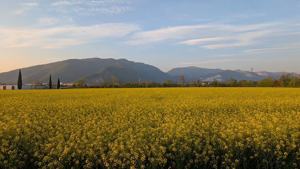 Un tempo l’UE pagava chi cominciava a coltivare la colza, si diceva per ragioni di carburante, allora sembrava che le auto potessero marciare con quella. Ora non so. Comunque almeno dal punto di vista dei colori di un certo momento dell’anno, questo, non è stata una cattiva idea.