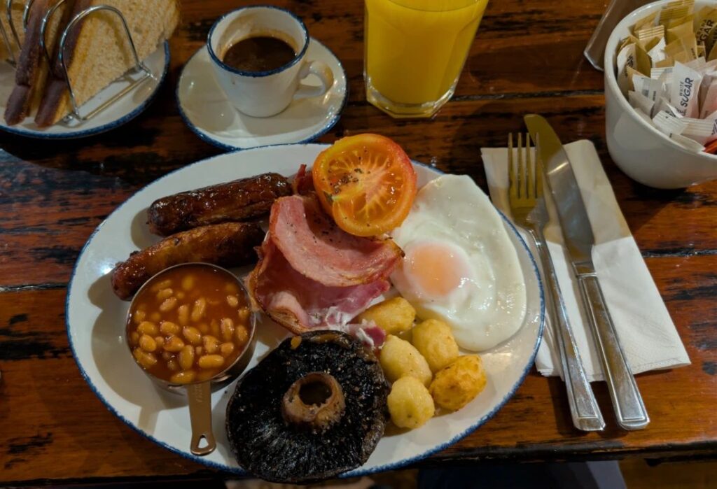 Bravo, trivigante, sempre bravo. Eh ma ho camminato tanto eh ma oggi camminerò molto eh ma ieri sera ho mangiato poco eh ma domani no. Solo un caffè. È così tutte le volte. Full english, manco un funghetto di meno. Fortuna che stamattina sono uscito presto per rivedere la cattedrale e camminare un paio d’ore lungo il fiume. O erano otto minuti? Non ricordo bene.