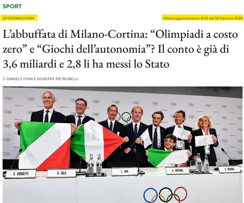Ora, però, bando alle tristezze, beviamoci un buon caffè all’ombra dei mille campanili, dipingiamo e componiamo musica prima di cena, una bella pizza e tante risate in compagnia, guardando magari la splendida festa delle olimpiadi, senza pensieri negativi. Perché «chi manifesta contro i Giochi è nemico dell’Italia», come dice Meloni.