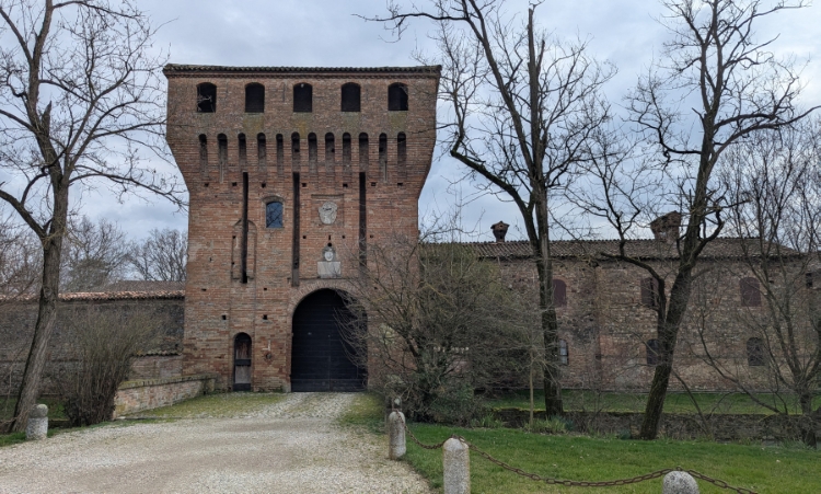 Nelle occasionali e mai poco soddisfacenti peregrinazioni per la pianura padana, un giorno siamo capitati al Castello di Paderna, nel piacentino. Conosciuto fin dalla menzione della tabula alimentaria traianea (l’avevo vista qui eoni fa), è un solido rettangoloide ben orientato con fossato a filo, in gergo molto tecnico si chiamano ‘edifici a ricetto’.