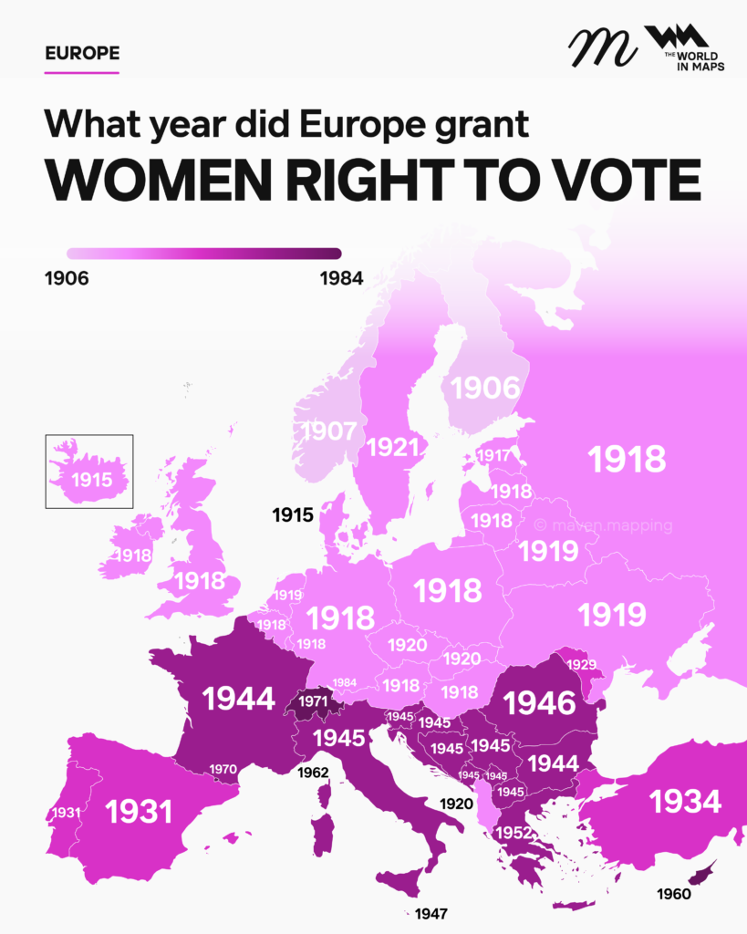 Paese per paese europeo, l’anno in cui fu dato il voto alle donne.