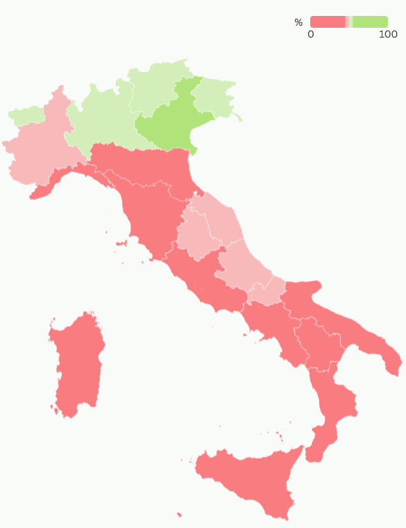Il che ci dice ancora una volta che a nord del Po c’è un problema.