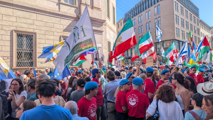 Un piccolo gruppetto della Brigata ebraica, brandendo bandiere di Israele e immagini di Netanyahu, uniti a una decina di sciroccati iraniani sostenitori dello Scià e a sette, dico sette, giovanissimi presumibilmente assunti da Forza Italia con le bandiere del partito, sono entrati nel corteo all’altezza dell’incrocio tra corso Venezia e via Palestro, mettendosi alla testa del corteo. E già questo era inopportuno. Corteo che, lo ricordo, è perfettamente in grado di distinguere ebraismo da Israele, tant’è che un collettivo ebraico c’era in corteo e ha sfilato tranquillissimamente, come è giusto che sia. Le bandiere dello stato di Israele e le immagini del suo primo ministro non potevano non essere rilevate come una provocazione, e questo era chiaro fin da prima del corteo, tant’è che l’accordo con la prefettura – lo dice il presidente dell’ANPI – era che non ci fossero le bandiere. Nessuno ha contestato la Brigata né, tantomeno, l’ha umiliata, ovviamente la provocazione è stata avvertita dal corteo – preso, lo ripeto, tra l’altro impropriamente dalla testa – e dalla folta rappresentanza palestinese. Sono semplicemente volati alcuni insulti e cori, come è inevitabile avvenga dopo due anni e mezzo di sterminio a Gaza, in Cisgiordania e ora nel Libano del sud e ben più di settantamila morti. La polizia ha fatto cordone, pochi anche loro a dire il vero con alcuni City angels difensori di chissà che, e la combriccola Brigata-iraniani per lo scià-Forza Italia ha ben pensato di fermarsi alla strozzatura della strada, all’incrocio, per quasi due ore. Fermando quindi tutto il resto del corteo dietro, più di centomila persone, al caldo e compresse. Quando sono cominciati i malori, dietro, sono partite le richieste di avanzare o di far uscire l’ostacolo dal corteo, il drappello protetto dalla polizia. Tutto qua. Colpevole anche la polizia che, anche solo per buon senso, avrebbe dovuto far uscire il tappo dal corteo, fossero anche i marziani sostenitori del cibo biologico, per questioni di ordine pubblico e incolumità dei partecipanti. Una volta usciti, dopo ben due ore e non avendo ottenuto gli incidenti che stavano evidentemente cercando, il corteo è proseguito pacificamente. Come era cominciata ed è stata tutta la giornata, con una manifestazione bellissima, colorata, aperta, limpida. Se qualcuno, Fiano o altri, abbia sentito un’idiozia pronunciata da qualcuno sulle ‘saponette mancate’, mi spiace sinceramente e ovviamente nessuno condivide ma non è la realtà di ciò che è accaduto ma un singolo episodio, ammesso sia accaduto. L’intenzione provocatoria del gruppuscolo era evidentissima per chi, come me e i miei amici, era proprio lì.