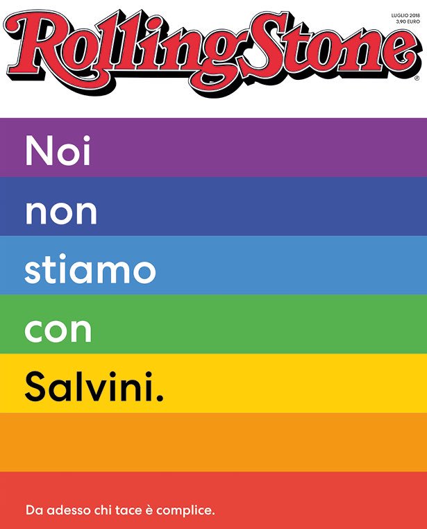 Ahia. Ecco perché serviva la premessa: Rolling Stone è una rivista, Rolling Stones con la -s, plurale, un gruppo. Ma se si sta leggendo la copertina di una rivista, forse qualche indizio già c’è. E già qui le risate si sprecano, porelli. Se lo saprebbero. Il che fa un po’ il paio con Rita Pavone che se la prende con i Pearl Jam che se la prendono con Salvini: ma davvero il mondo del rock anglosassone se la prende con la Lega? Mmm, no.